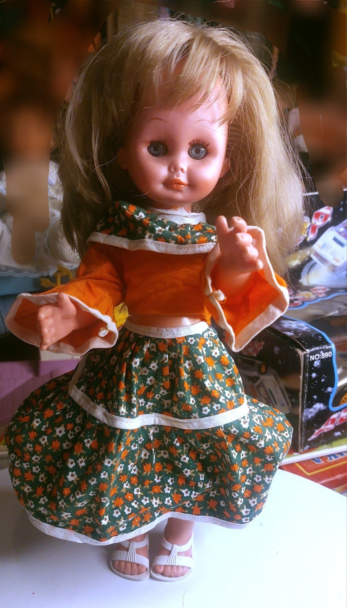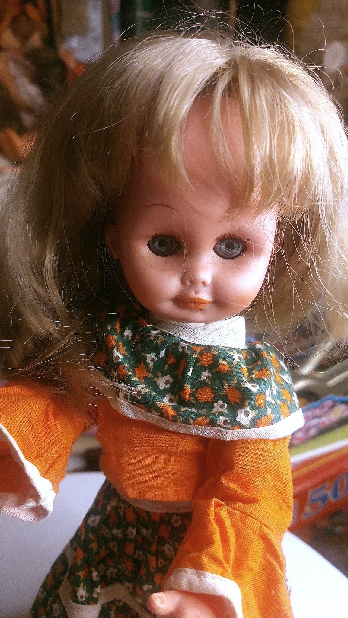 Σε έναν κόσμο γεμάτο αναμνήσεις, όπου τα παιχνίδια είχαν ψυχή και κάθε κούκλα έκρυβε μια ιστορία, γεννήθηκε αυτή η μοναδική ελληνική κούκλα. Με τα μεγάλα εκφραστικά μάτια της και το γλυκό της χαμόγελο, μοιάζει σαν να ψιθυρίζει μυστικά από μια άλλη εποχή.