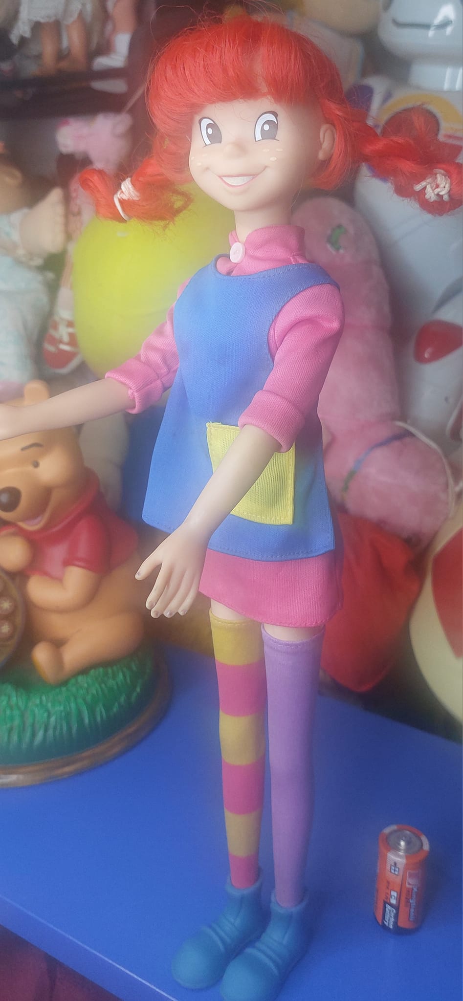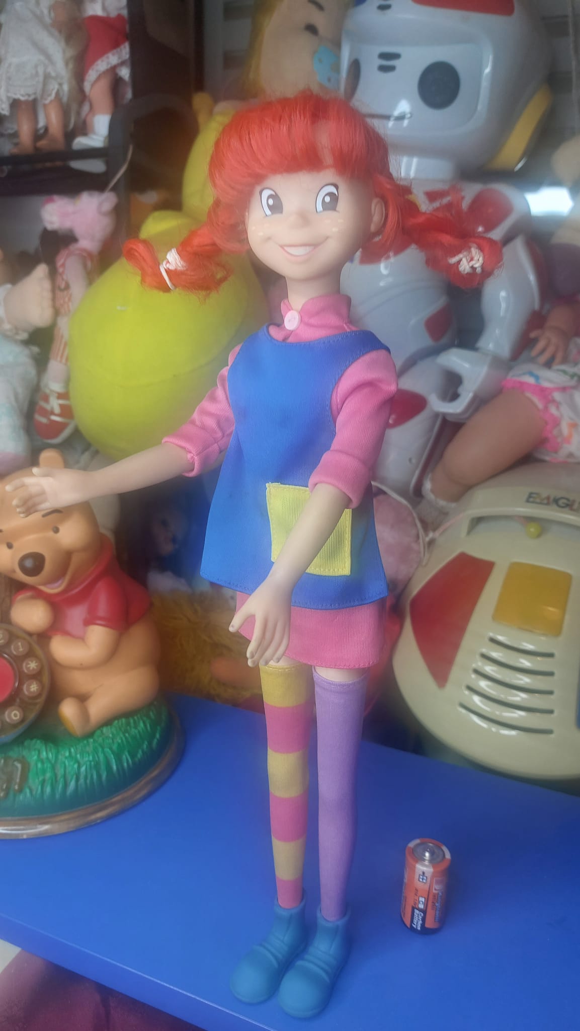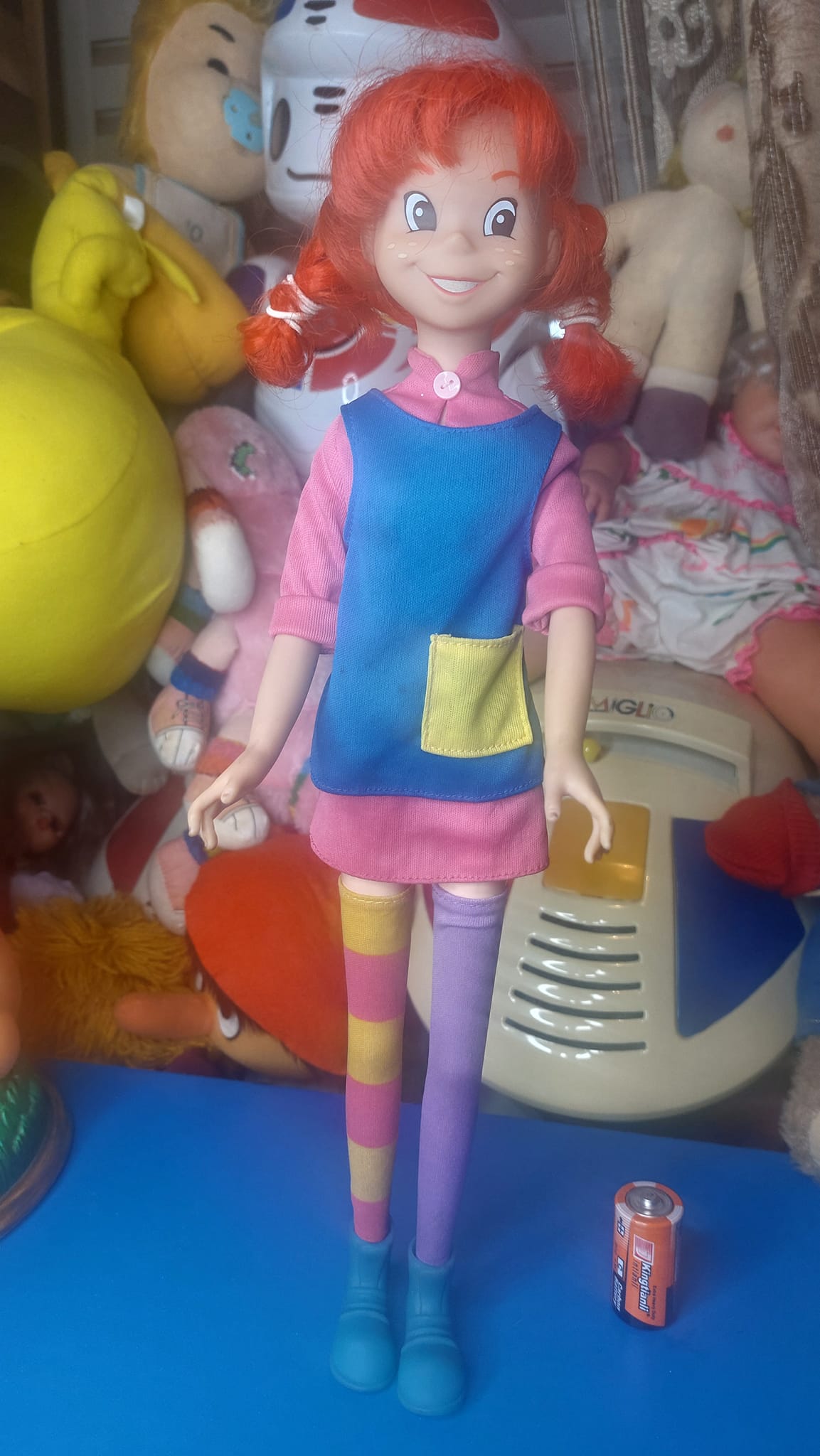 Η αυθεντική και εξαιρετικά σπάνια κούκλα Πίπη Φακιδομύτη (Giochi Preziosi 1992/1995), σε μεγάλη έκδοση ύψους 42 εκ., είναι πραγματικά συλλεκτικό κομμάτι. Αγορασμένη από μαγαζί στο Τορίνο, διατηρεί όλα τα αυθεντικά της αξεσουάρ και αποπνέει τη γοητεία της αγαπημένης ηρωίδας όπως την ξέραμε. Μια μοναδική ευκαιρία για τους συλλέκτες και τους λάτρεις της Πίπης, έτοιμη να κατακτήσει την καρδιά σας και να φέρει τον κόσμο της νοσταλγίας και της παιδικής χαράς στο σπίτι σας!