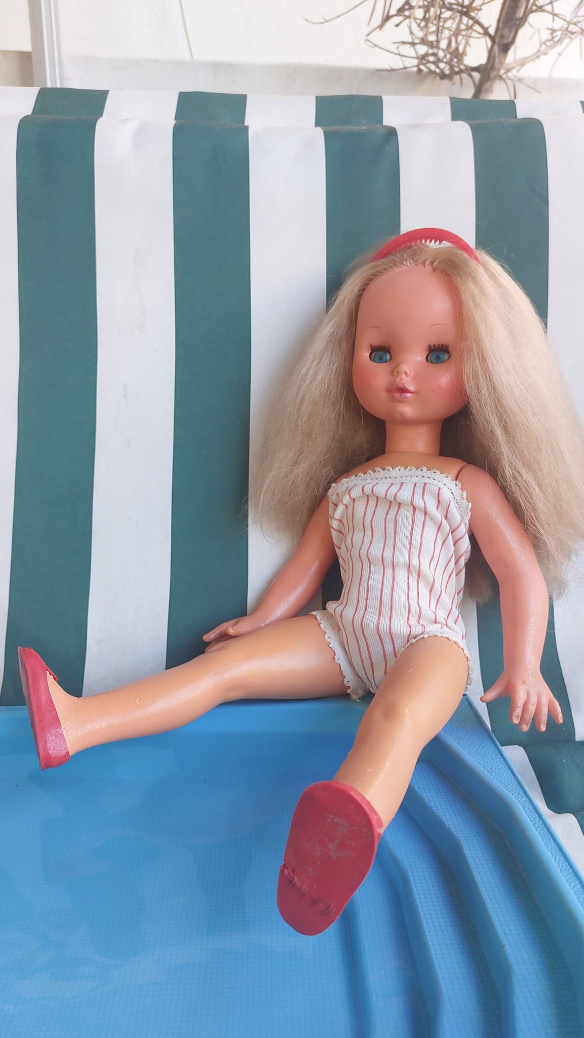 Ανακαλύψτε την γοητεία του παρελθόντος με αυτή την εξαιρετική κούκλα Furga TRE EMME Mimma Alta Moda, αυθεντική από τη δεκαετία του '60/'70. Αγορασμένη σε ένα ταξίδι μου στη Ρώμη, αυτή η κούκλα αποτελεί ένα πραγματικό συλλεκτικό στολίδι για κάθε λάτρη της εποχής.