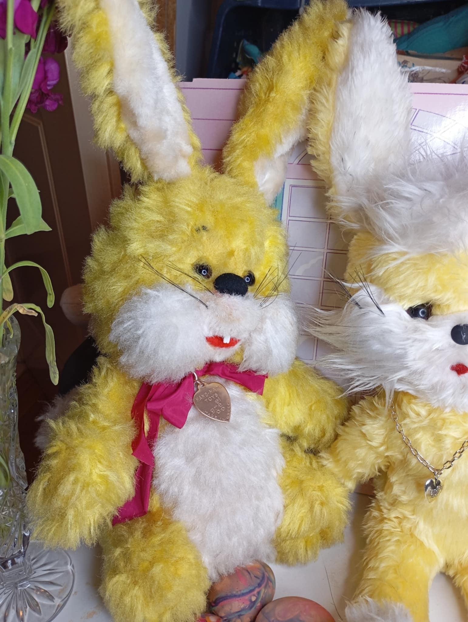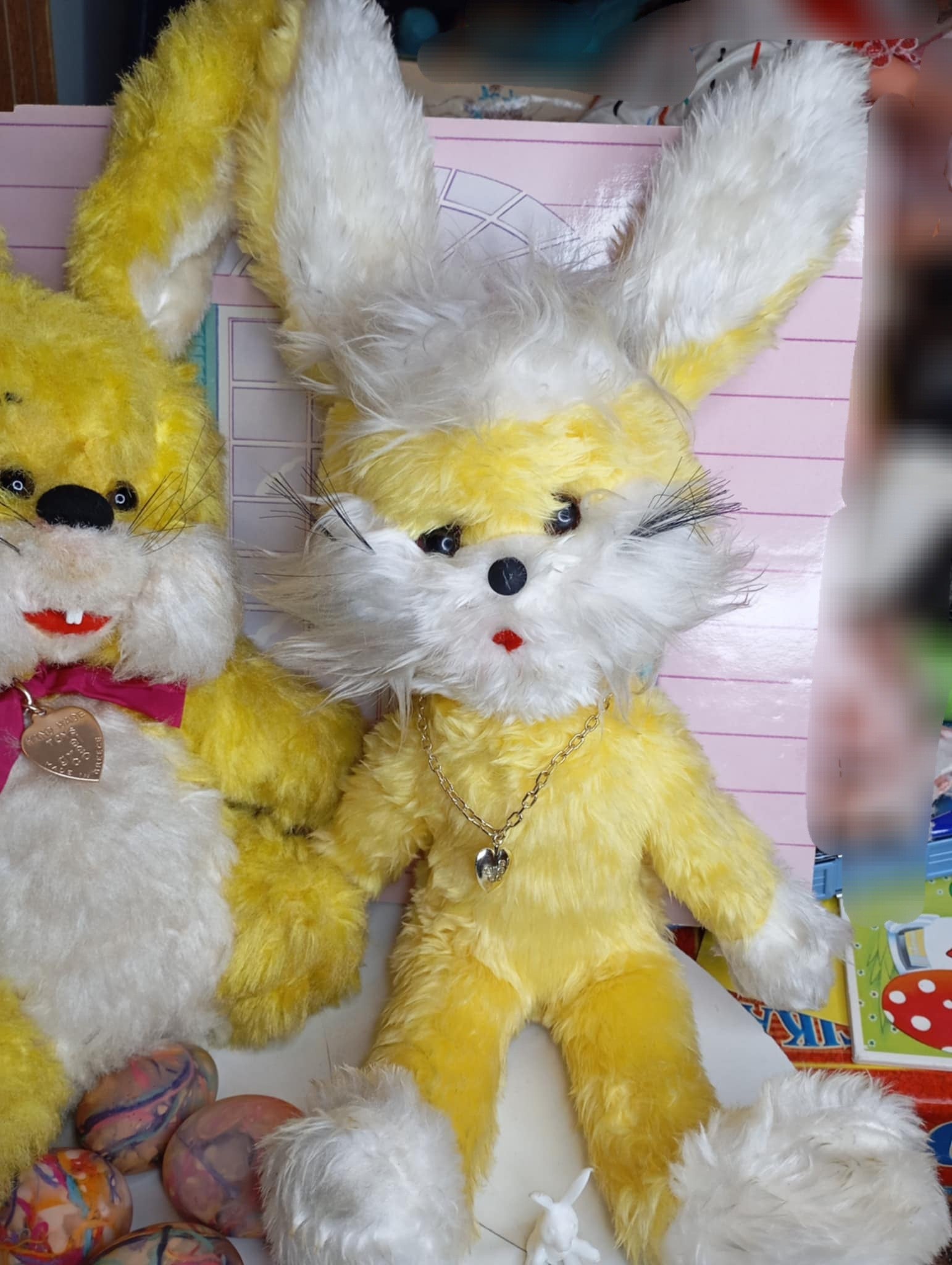 Προσφέρεται πακέτο δύο υπέροχων μεγάλων λούτρινων λαγών της φημισμένης El Greco, σε εξαιρετικά σπάνιο κίτρινο χρώμα!