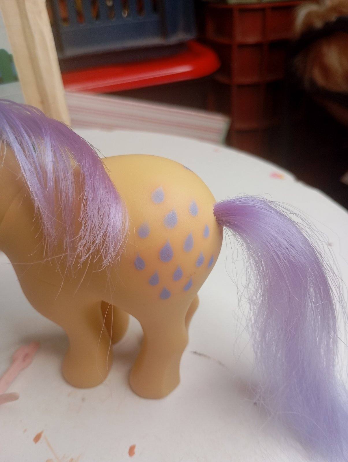 Το πόνυ Ζιζη (κιτρινωπή με μοβ βούλες, λιλά χαίτη και ουρά)