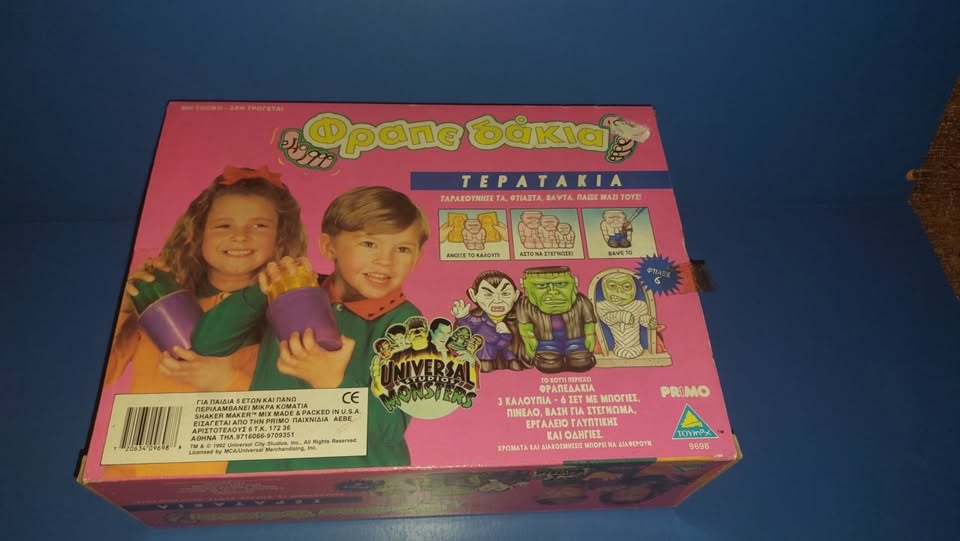 Το 1992, η ToyMax παρουσίασε αυτό το εξαιρετικό παιχνίδι, που σας επιτρέπει να δημιουργήσετε τις δικές σας φιγούρες από τους διάσημους "Universal Studios Monsters." Η συσκευασία είναι ακόμα σφραγισμένη, διατηρώντας την αυθεντικότητα και τη συλλεκτική αξία του. Ήταν ένα δημιουργικό παιχνίδι που επέτρεπε στους χρήστες να δημιουργούν δικά τους αποτυπώματα φιγούρων, αναμειγνύοντας μια ουσία παρόμοια με γύψο και χύνοντας την σε καλούπια. την ταρακουνούσες σαν φραπέ. Τα μίγματα σκληραίνονταν και δημιουργούσαν μια εξατομικευμένη φιγούρα.Την οποία μετά την ζωγράφιζες με τα χρώματα που είχε μέσα στην συσκευασία. το παιχνίδι είναι ακόμα στην αρχική του συσκευασία και δεν έχει ανοιχτεί ή χρησιμοποιηθεί.